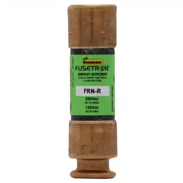 FRN-R-1-6/10, Cooper Bussmann, Fusetron, type FRN-R, Class RK5, low voltage fuse, 1 barrel, 0.56″ diameter, 1A, 250Vac/125Vdc, 200kA@250V, dual element, current-limiting, time-delay fuses
