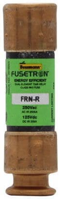 FRN-R-20, Cooper Bussmann, Fusetron, type FRN-R, Class RK5, low voltage fuse, 1 barrel, 0.56″ diameter, 20A, 250Vac/125Vdc, 200kA@250V, dual element, current-limiting, time-delay fuses