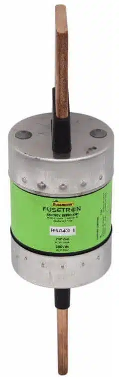 FRN-R-400, Cooper Bussmann, Fusetron, type FRN-R, Class RK5, low voltage fuse, 400A, 250Vdc, 20kA@250Vdc, 2.38″ diameter, dual element, current-limiting, time-delay fuses