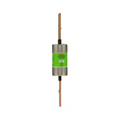 The Bussmann FRS-R-110 from the Fusetron line is a dual element fuse, rated for 600V and 110A, offering a significant interrupt rating of 200kA@600V. Specifically designed for circuits needing time-delay characteristics, this fuse efficiently handles both high inrush currents and typical loads, making it ideal for motors and transformers protection. Its dimensional compatibility with existing infrastructure and its adherence to stringent regulatory standards ensure it is a top choice for electrical safety and maintenance tasks where reliable performance under high fault conditions is critical. Ideal for industrial electricians focusing on system integrity and safety compliance.