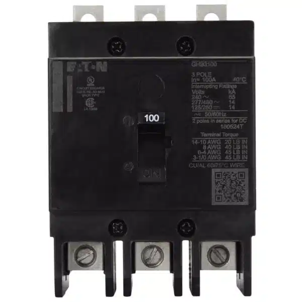 The Eaton GHB3050 is a Series C circuit breaker designed for professional grade electrical distribution systems. It features a bolt-on connection, ensuring a secure and reliable fit within electrical assemblies. This GHB type breaker operates at a voltage of 480V, with provisions for three-phase applications, making it suitable for commercial or industrial setups. It incorporates thermal magnetic protection to effectively manage overheating and current surges, supporting circuit integrity and longevity. With a 14kA@480V AIC rating, it offers robust fault current interruption capability. The breaker executes long-time and instantaneous tripping mechanisms, allowing for versatile and immediate response under critical conditions. Ideal for environments where dependable performance is non-negotiable, this breaker meets the rigorous demands of professional electricians.