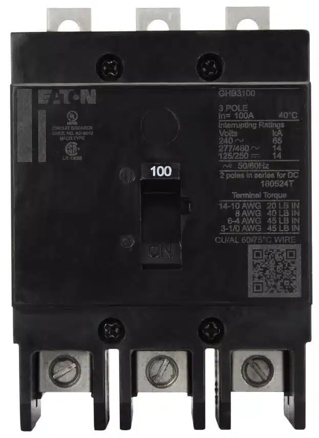 GHB3050, Eaton, Series C, Type GHB, LI – Long-Time and Instantaneous, Bolt-On, Thermal Magnetic, G Frame, 14kA@480V, 50A, 2V, 3PH, 3P, molded case, circuit breaker