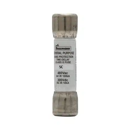 SC-30, Bussmann, SC Series, type SC, Class G fuse, 30A, 480Vac, 100kA@480V AIC rating, barrel, 0.41″ diameter, current limiting, time-delay, UL listed, CSA certified low voltage fuse