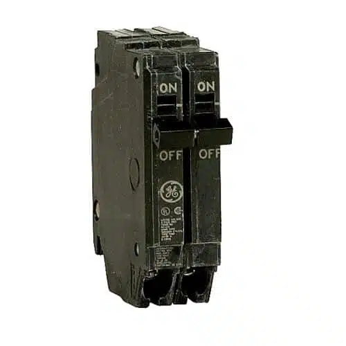 THQP215, General Electric, type THQP, 2P, 1PH, 15A, 120V, 10kA@120V, UL listed, Plug-In, complete with internal common trip, LI – Long-Time and Instantaneous trip functions and load side lug terminal, Thermal Magnetic, molded case circuit breaker